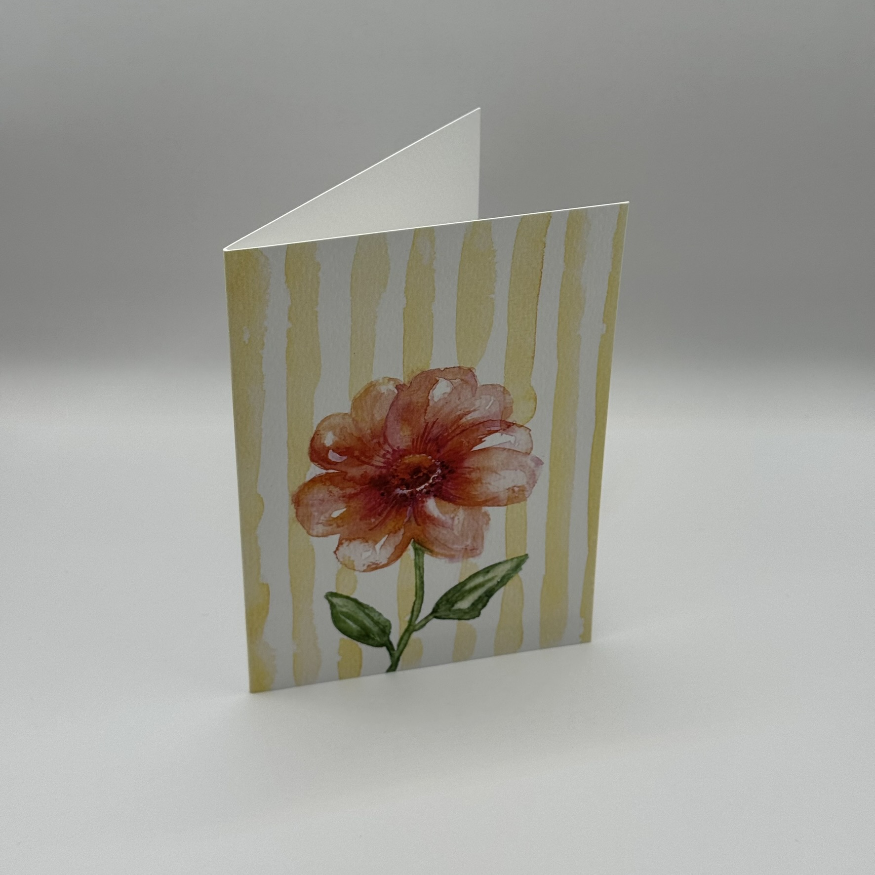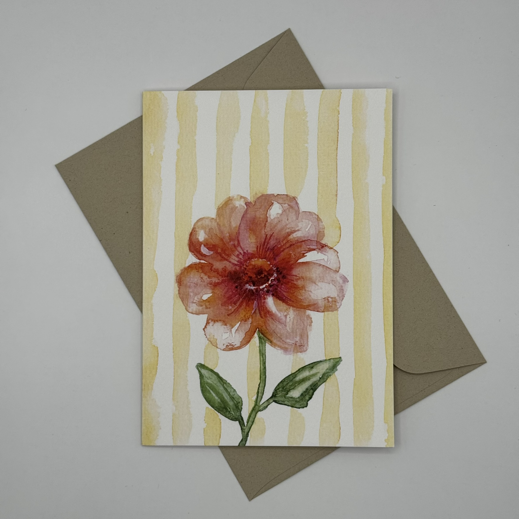 Strahlende Aquarellblüte auf sonnigem Hintergrund – eine Karte voller Wärme und guter Laune.